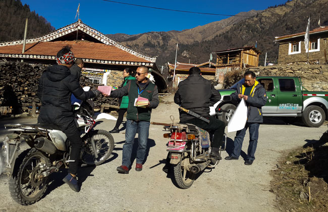 進入森林防火警戒期以來,我景區降雨偏少,氣溫較高,火險等級持續攀升,森林草原防火形勢嚴峻。加之冬季景區村民開始入山砍柴、拾柴。針對這一特殊時段,12月9日,達古冰山管理局聯合黑水縣護林防火指揮部辦公室、縣林業局及蘆花林業站組成工作組,深入景區各村寨、景點、有林地開展了森林防火、林政管理等法律法規知識宣傳,持續做到景區護林防火工作警鐘長鳴、常抓不懈。