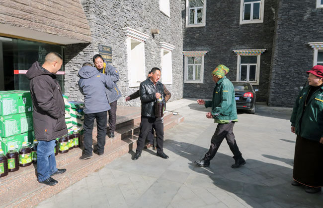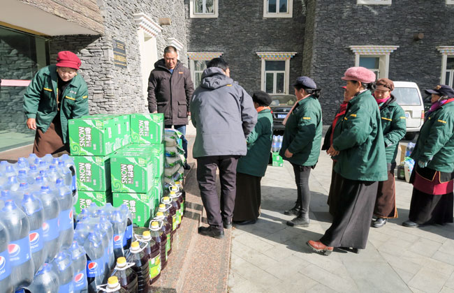 春節來臨之際,1月24日上午,達古冰山管理局副局長仁青代表管理局對景區管理中心21名環衛職工送去慰問品,向辛勤勞動、默默奉獻的環衛工人表示感謝。仁青副局長表示,環衛工人,是最光榮的勞動者,最應該受到尊敬,最應該得到大家的關心和幫助,也最應該得到大家的理解。