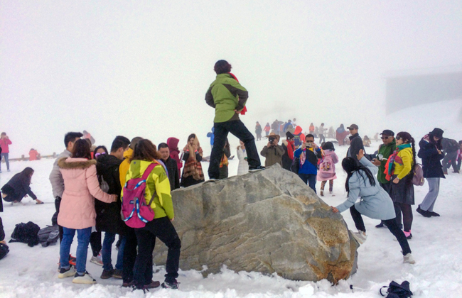 “現在是端午節了,真沒想到這里山下是一片蔥郁,山上還在下雪,而且云霧繚繞,真是冰火兩重天,太美了”,成都客人李先生如是說。