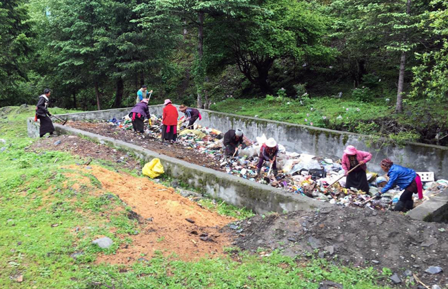 參加勞動的人員發揚不怕臟不怕苦的精神,尤其是針對三達古藏寨周圍的衛生死角進行了一次徹底的清掃和清運。