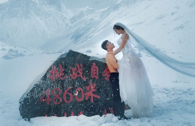 達古冰山風景名勝區位于中國四川阿壩藏族羌族自治州黑水縣境內,系罕見的現代山地冰川景區。2016年4月,首屆“帶著婚紗去達古”攝影活動在達古冰山景區舉行。6對情侶在海拔4860米的達古冰山之巔拍攝的絕美婚紗照在網絡上廣泛傳播。“去達古冰山拍婚紗照,讓洛格斯圣山和萬年冰川見證純潔的愛情”成了無數情侶新的向往。