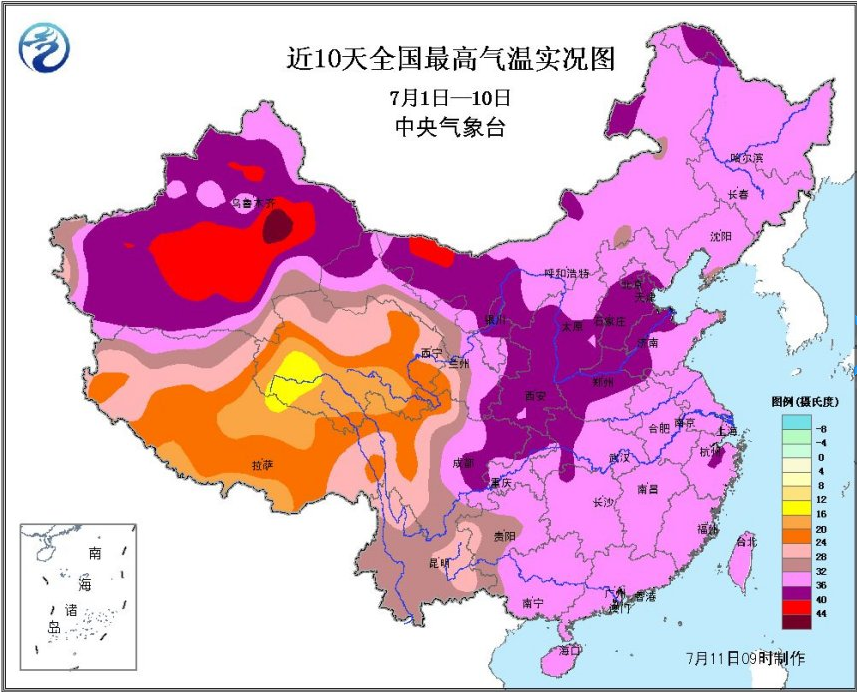 此次高溫天氣具有持續時間長、局部強度大,北方的高溫以晴熱為主,而南方的高溫以悶熱為主的特點。