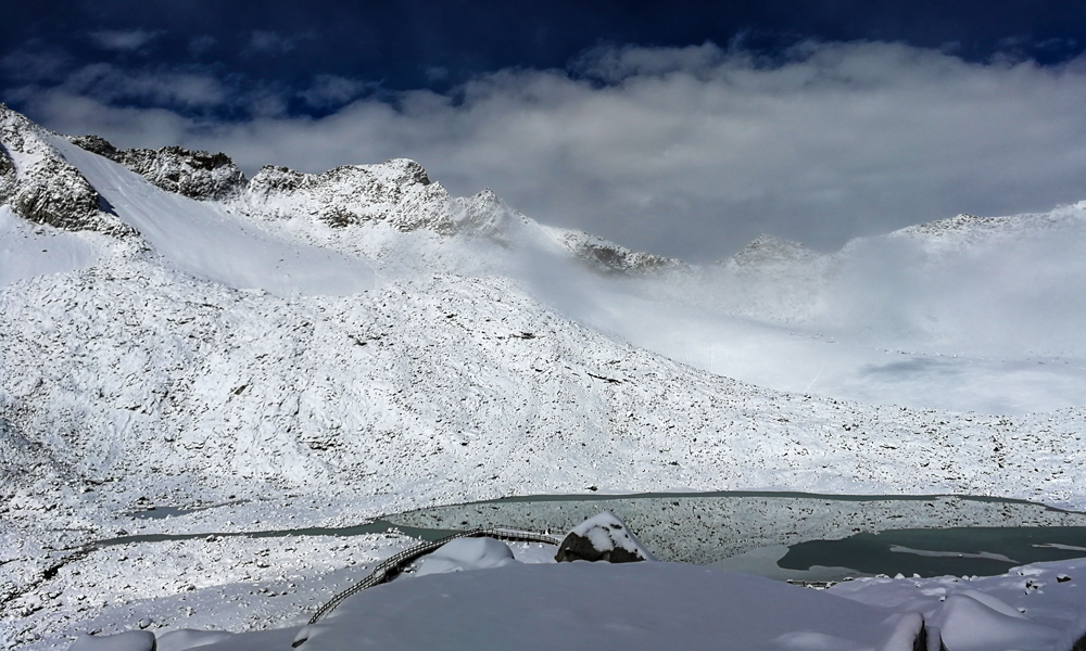 今日達古冰山晴空萬里在青山綠水、紅石雪峰的美景中大家不斷嘖嘖稱奇,感嘆大自然造就的奇異景觀。達古冰山不僅有冰川,整個景區的原始森林、湖泊、紅石等眾多美景讓游客嘆為觀止,普遍認為達古冰山景區游覽價值高,自然資源豐富,景點打造獨特,是具有國際范的大型生態景區。