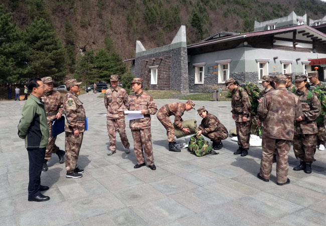 2018年3月27日,阿壩軍分區漆載宣副司令員深入達古冰山,通過點名、查證、檢查行裝、檢查戰備室和器械庫等,對管理局民兵應急分隊進行點驗。
