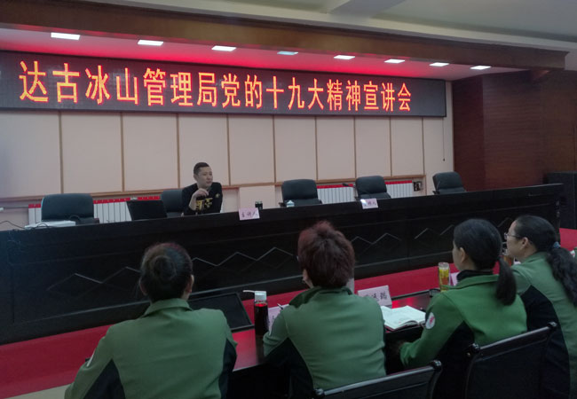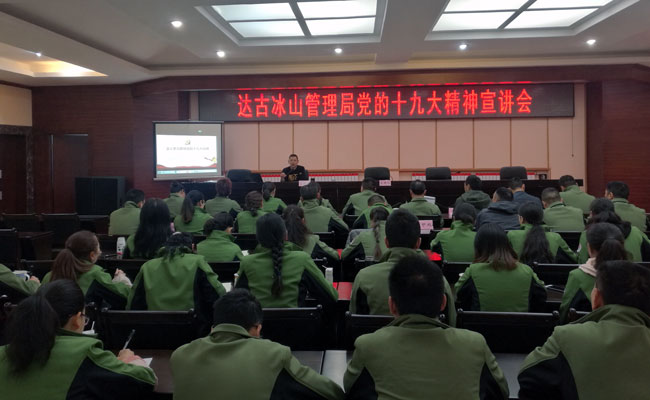 3月28日,達古冰山管理局邀請州委黨校政治理論工作者專題宣講黨的十九大精神。局班子成員文定清、唐華祥、吳成紅、仁青、周遠璐和全局黨員干部參加了宣講活動。