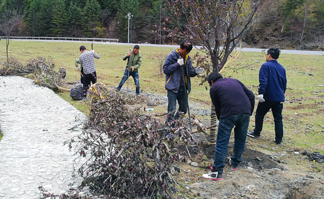 植樹(shù)種花美環(huán)境。進(jìn)一步強(qiáng)化生態(tài)環(huán)境治理,建立苗圃基地,對(duì)紅葉彩林樹(shù)種進(jìn)行培育。與四川植物工程研究院花卉研究所商議,擬建立高山花卉科研基地。對(duì)景區(qū)道路兩旁公路進(jìn)行綠化、亮化、美化,種植格?;?,種植面積達(dá)40畝,同時(shí)在游人中心擺放20000盆鮮花和綠色植物。在景區(qū)金猴海種植觀賞植物80株。