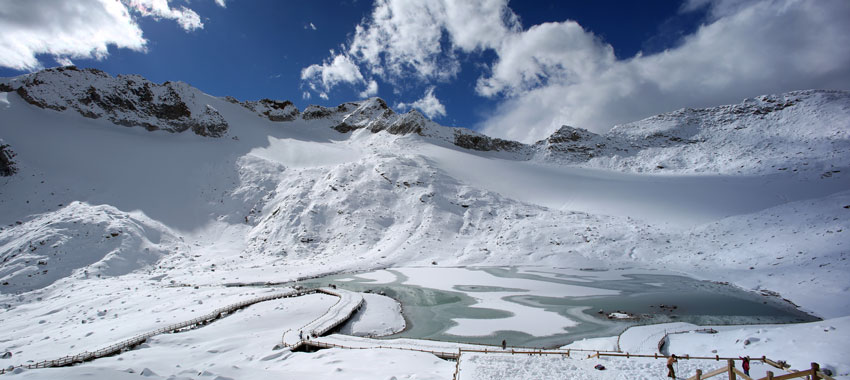 “立夏”前后,全國(guó)大部分地區(qū)平均氣溫在20℃--29℃上下,有的地方甚至突破了30℃!不過(guò),如果你來(lái)到達(dá)古冰山一定會(huì)充滿疑問(wèn):是時(shí)光倒流了嗎?我穿越回冬季了?達(dá)古冰山的夏天在哪里?初夏的達(dá)古,依然大雪紛飛,四處都是白茫茫的積雪,站在4860的冰山之巔,你還需要穿著羽絨服,甚至需要烤電爐,體驗(yàn)傳說(shuō)中的“圍著火爐吃西瓜”。