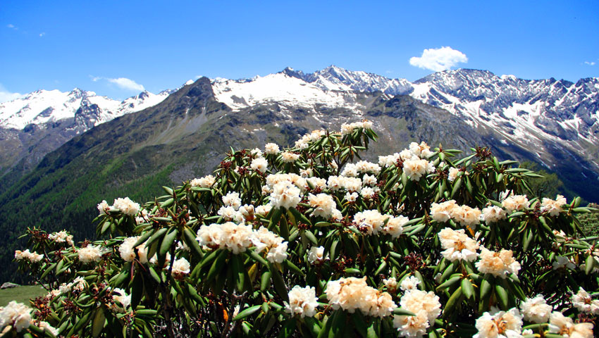 都說(shuō)四月芳菲盡,可達(dá)古冰山的杜鵑花兒到五月才開(kāi)始綻放,景區(qū)杜鵑花品種多、花期長(zhǎng)、顏色艷麗。每年五至七月,萬(wàn)畝杜鵑競(jìng)相開(kāi)放、爭(zhēng)奇斗艷,徜徉其中,花香撲鼻、沁人心脾。你可以盡情徜徉在四十里花海長(zhǎng)廊,身臨達(dá)古美景鳥語(yǔ)花香;你還可以乘坐世界之最的高空索道,俯瞰萬(wàn)畝杜鵑在冰山之間綻放;如果你有什么心愿和祈求,那一定要去轉(zhuǎn)轉(zhuǎn)洛格斯神山福佑圓心愿。