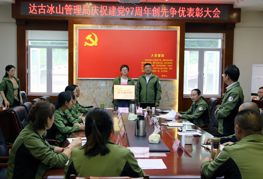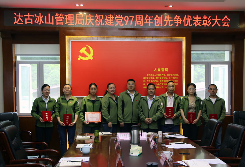 一是召開慶祝建黨97周年創(chuàng)先爭優(yōu)表彰的大會。6月29日下午,全局黨員同志重溫了入黨誓詞,局黨委表彰了2017—2018年度先進黨支部、優(yōu)秀共產黨員和黨務工作者;局長文定清發(fā)表“七一”講話,希望全體黨員同志傳承黨的精神、牢記黨的使命,爭做忠誠、干凈、擔當模范,為推動達古冰山景區(qū)旅游發(fā)展貢獻力量。
