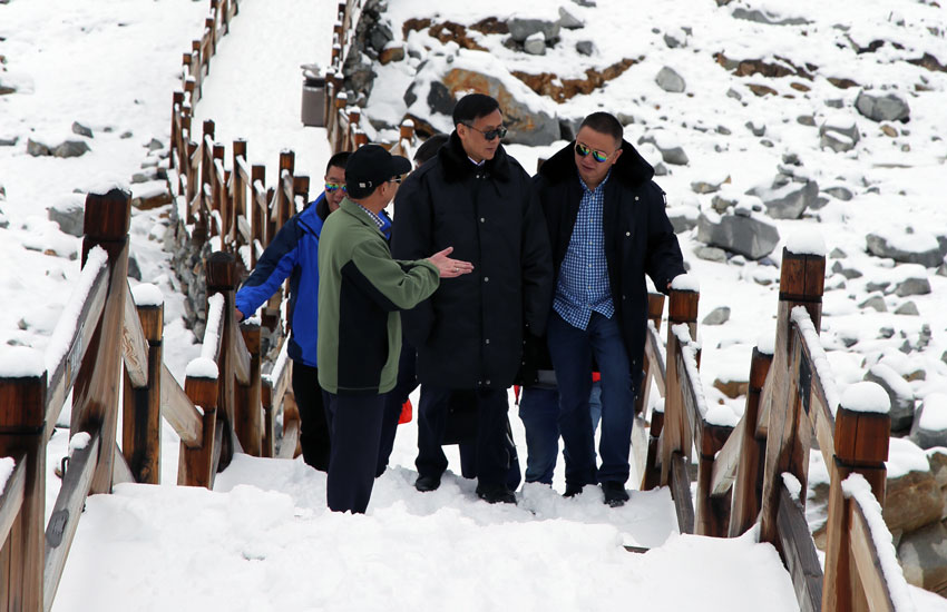 調研活動中, 在崗書記詳細了解達古冰川五A景區規劃情況,認真查看旅游景點服務設施、安全措施和標識解說,滿懷深情感受冰川地質與環境,邊調研邊詢問邊提出整改要求,處處體現了對達古冰川的深切關懷和殷切希望。實地調研結束后,聽取了達古冰山管理局關于旅游發展和黨風廉政建設工作匯報,并圍繞“規劃”、“融資”、“營銷”和“監管”作了重要講話。