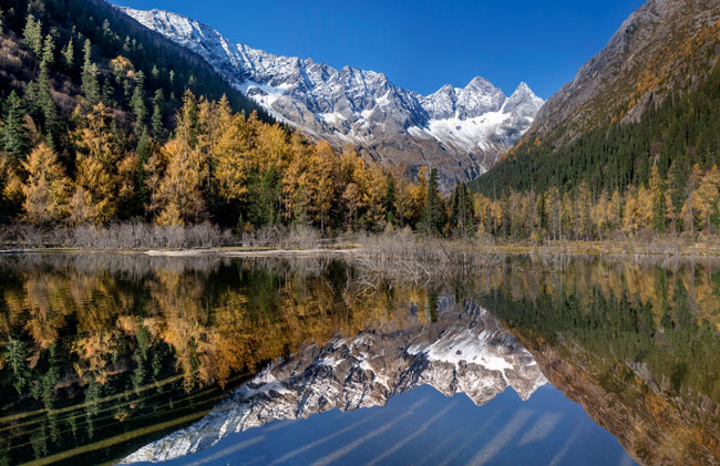 暑退秋澄氣轉涼,南方剛準備迎接秋天,達古冰山景區已穿上金色華服,步入秋天童話世界。而再過幾日,達古冰山將層林浸染,進入另一個彩色童話世界。