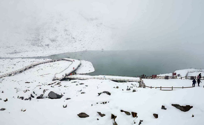 從9月30日起景區(qū)就開始降雪,一直持續(xù)到10月1日,4860觀景平臺積雪頗深,不少游客紛紛用手機記錄雪景,拍照留念,盡情踏雪、賞雪,感受北國風光。