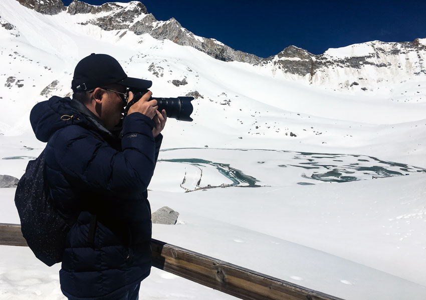 達古冰川的景色,對來自平原地區(qū)的大咖們有一種特別的“魅惑”。地勢落差造成了高低錯落的美感,讓人忍不住一看再看,舉起鏡頭只想把這美麗定格在掌中。