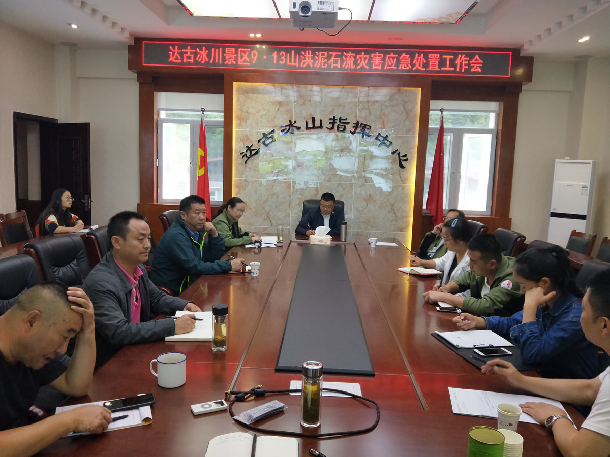 9月13日12時(shí),管理局文定清局長(zhǎng)組織召開(kāi)達(dá)古冰川景區(qū)9.13山洪泥石流應(yīng)急處置工作會(huì)。