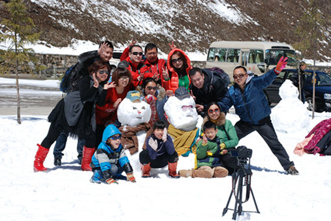 清明節期間,達古冰山景區游人如織,游客們在景區內打雪仗、堆雪人,不論是大人、小孩都肆無忌憚地彰顯著親臨大自然的興奮。