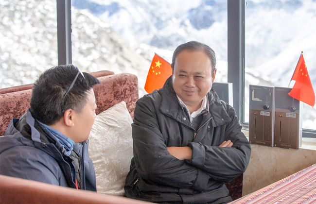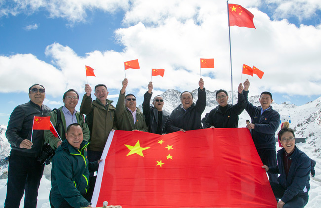 州委書記劉坪在達古冰川景區海拔4860米雪山之巔慶祝祖國70周年華誕