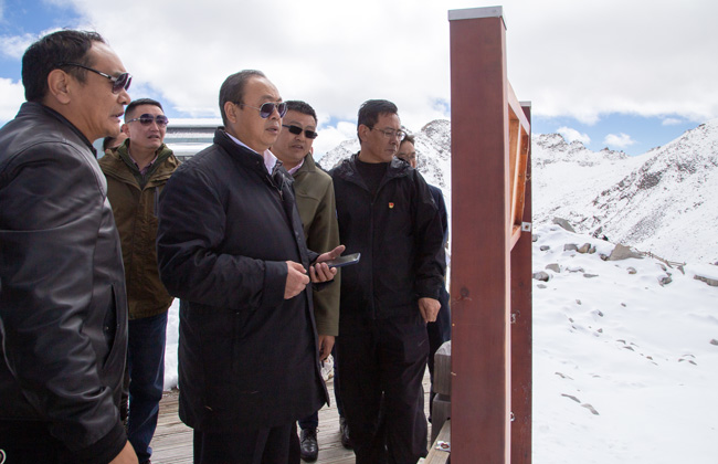 州委書記劉坪在達古冰川景區海拔4860米雪山之巔調研