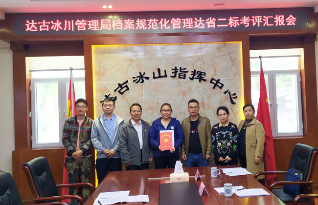 10月11日,受省檔案局委托,由州、縣檔案館5名專業(yè)技術(shù)人員組成的檔案規(guī)范化管理省二級標(biāo)準(zhǔn)考評組深入達(dá)古冰川管理局考評檔案規(guī)范化管理達(dá)省二標(biāo)工作。