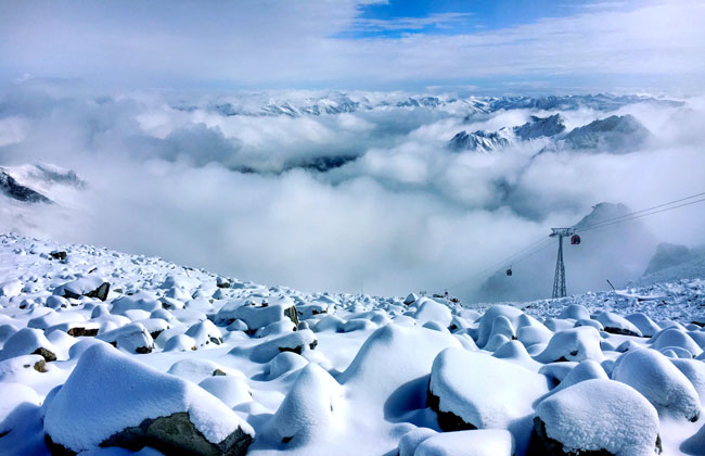 也許你會(huì)說很多地方都可以看雪、玩雪,何必要來達(dá)古冰川。但你有過在海拔4860m的雪山之巔玩雪賞雪的體驗(yàn)嗎?