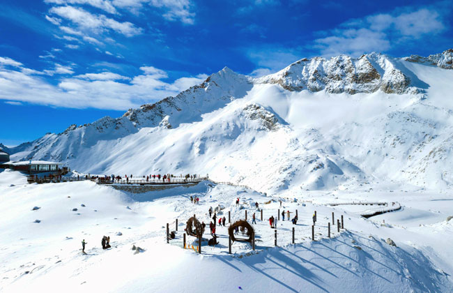 達(dá)古冰川有全球海拔最高的客運(yùn)索道,你可以和心愛的ta一起乘坐纜車,體驗(yàn)穿越云霄的心跳,登上海拔4860米的雪山之巔,在皚皚白雪的包圍中“走到白頭”。你們背靠巍峨挺拔的雪山,面朝翻涌不息的云海,億年的冰川見證著你們的愛情。你們還可以在全球最孤獨(dú)的咖啡館里和愛人相對而坐,共握一杯溫暖的咖啡,傾聽來自九千年的承諾。你忽然就會(huì)領(lǐng)悟到什么叫山盟海誓,什么叫剎那永恒。