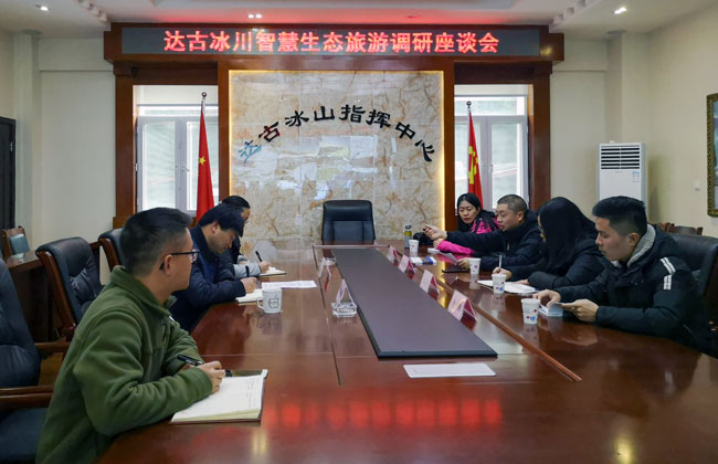 調研結束后,與達古冰川管理局相關負責人進行座談交流,并就共同申報科技計劃項目進行深入研討,推動達古冰川智慧全域旅游建設達成初步合作意向。