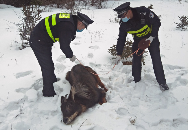 2月17日上午,達古冰川管理局洛格斯管護站王雄建一行2人,在神牛湖巡山護林過程中,發現1只死亡的野生動物,隨即,他向管理局辦公室報告了這一情況。得到消息后,管理局立即通知保護處,并聯系縣林業和草原局、縣森林公安、縣防疫站等相關部門,組成臨時工作組,深入現場進行處置。