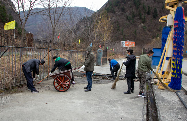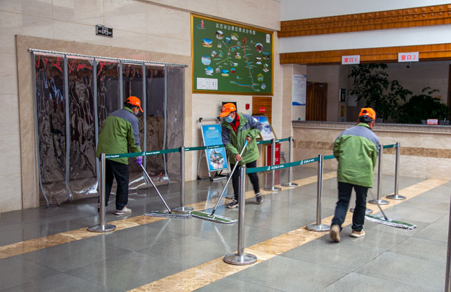 按照劃片包干,各區域負責人組織責任部門根據區域劃分對索道上下站、馬橋基地和停車場區域、冰川大酒店區域、景區村寨區域、景區一線景點及周邊區域、溝口公共區域、辦公區域、冰川家園區域進行徹底大清掃,清理衛生死角、消除白色垃圾、清理河道漂浮物、清運垃圾、清除破舊經幡和標識標牌,并進行大面積的消毒殺菌,營造整潔、有序的居住和旅游環境。