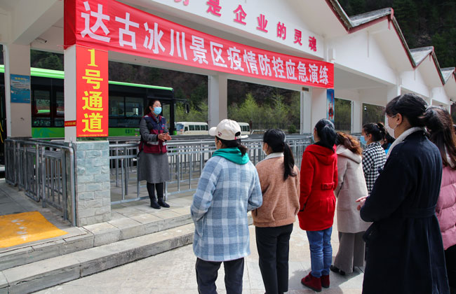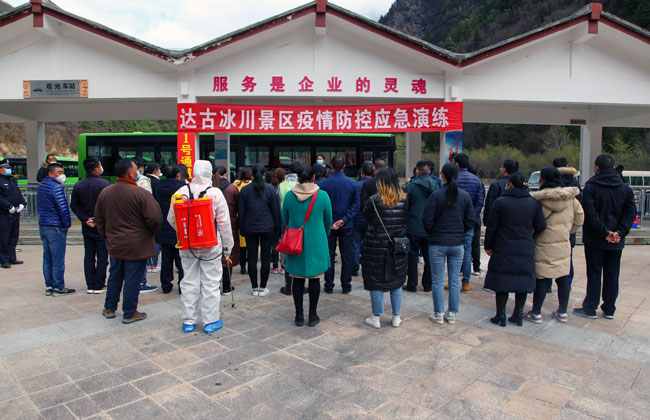 為做好景區(qū)開園復(fù)工和疫情防控工作,及時(shí)妥善處置突發(fā)事件,進(jìn)一步提升員工應(yīng)急處置能力。3月30日上午10時(shí),達(dá)古冰川管理局在檢票口組織開展疫情防控應(yīng)急演練。