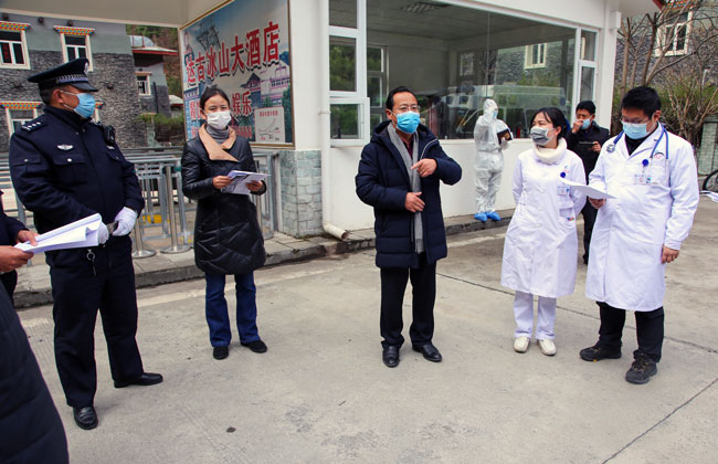 根據(jù)應(yīng)急預(yù)案,應(yīng)急處置辦公室報(bào)告縣疾控中心,并通知冰川公司和游人處暫時(shí)關(guān)閉景區(qū)停車場和游客服務(wù)中心,機(jī)關(guān)事務(wù)中心安排人員對留置場所及“疑似患者”途經(jīng)區(qū)域進(jìn)行全面消毒處理、游人處做好游客的情緒安撫。