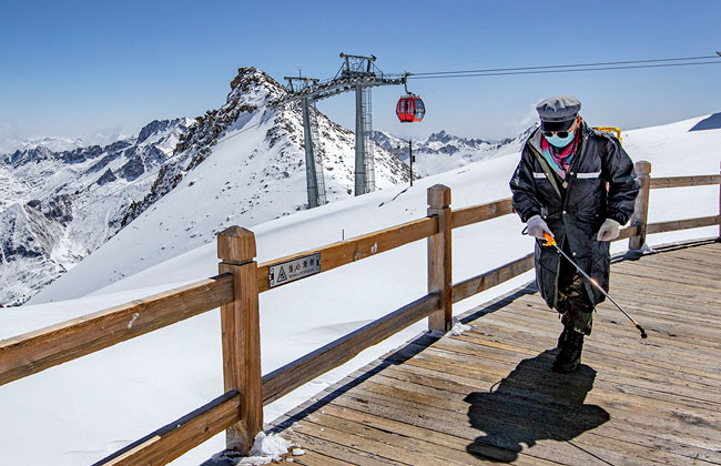 為給游客們營造一個安全愜意的游覽環境,做好五一假期前的迎客準備,管理局提前在游客中心、觀光車、纜車、停車場等人員聚集處做好了消毒工作。大冰川公司對觀光車、索道等進行了常規保養等工作。同時,疾控中心專業技術人員對員工進行了個人防護和消殺技術培訓等疫情防控工作。