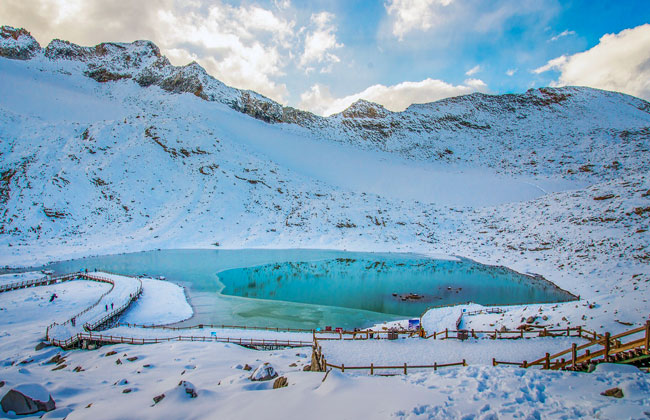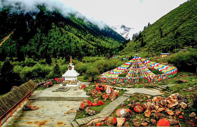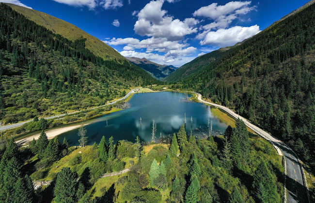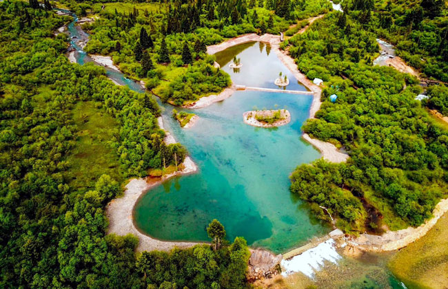 羅畢圣湖式最近達古冰川的新增景觀,3座島礁相互呼應,從空中鳥瞰猶如“心”形翡翠彩池,徒步路過此處,一定停下來看看著一汪碧水,它能散去你周身的炎熱。