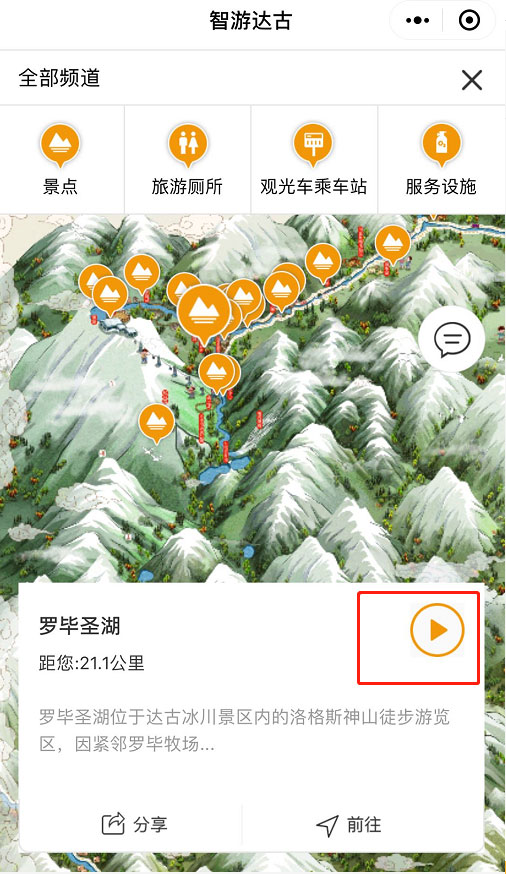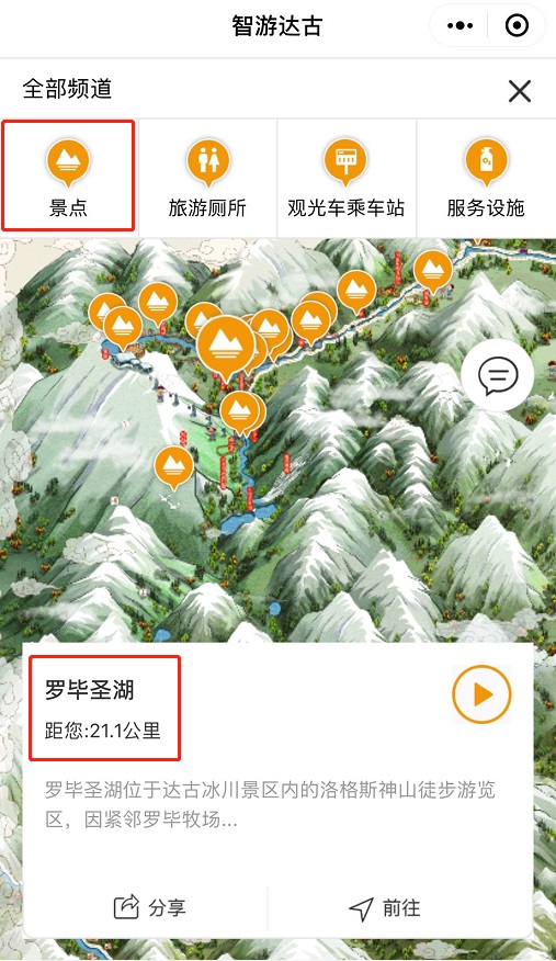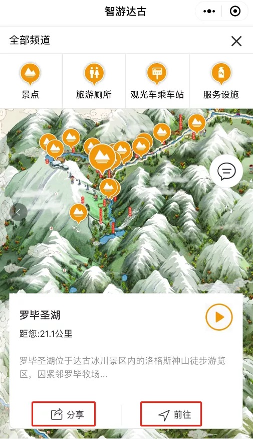 看完上面小編的講解,現(xiàn)在大家都比較了解我們的“智游達(dá)古”小程序了吧,這不就快周末了嘛,收好這份“使用說明書”快來達(dá)古冰川打開咱們的“智游達(dá)古”體驗一下吧,讓你在景區(qū)內(nèi)化身導(dǎo)航小能手,自由暢玩,說不定還能找到別人不知道的美景呢!