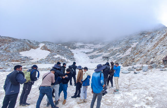 拍攝中,劇組工作人員精心挑選拍攝地點,先后來到17號、15號冰川前空地,在不破壞冰川地質的情況下,按照建設珠峰5G光信號基站過程,進行了全方位、多角度拍攝,劇組還對達古冰川冰磧湖、冰川、高山湖泊等景觀進行了取景拍攝。