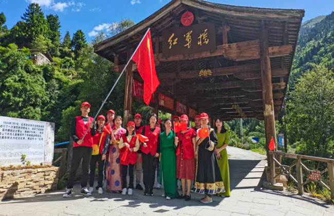 堅持黨建帶團建,團建促黨建,志愿者們首先來到達古冰川黨建文化廣場,聽志愿者講解紅軍途徑黑水軍民感人魚水情故事,了解到紅軍翻越的最后一座大雪山,---達古(打鼓)雪山。在欣賞美景的同時,感受紅軍的長征精神,那堅定的信念和堅韌不拔的毅力,深深扎根在我們青年團員們心中。