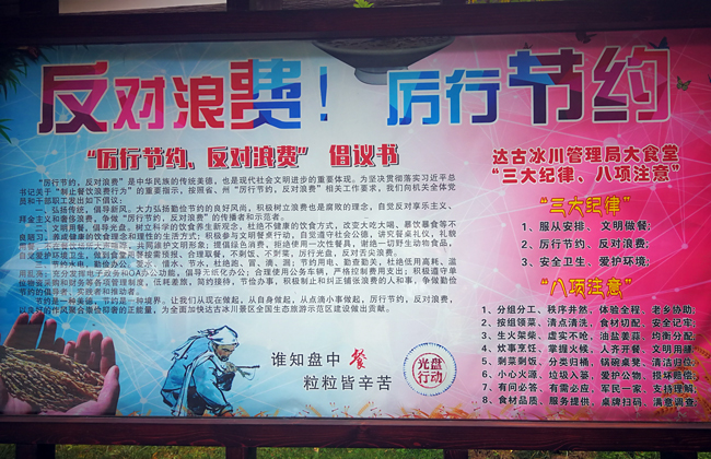 為扎實推進“厲行節約、反對浪費”工作,達古冰川管理局結合工作實際,以建立長效機制為突破口,出臺了一系列厲行節約的措施。