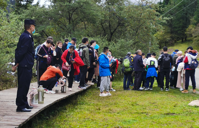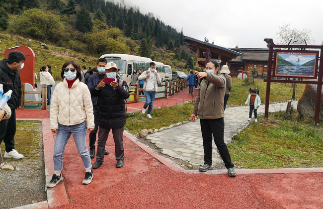 在游玩達古冰川景區后,有游客感慨到“我自巍峨立羊拱、春花夏雪映湖泊、冬梅秋來彩林紅、達古昌德雪山雄、紅色足跡照蒼穹、山泉濤聲走入夢、暢飲美酒迎高朋”。其實,達古冰川不僅有旖旎的自然風光、多彩的民俗文化、厚重的紅色文化等,十一黃金周期間,那些普通的景區工作人員格盡職守、默默奉獻的風采構成了一道靚麗的風景線。有他們,游客在達古冰川景區游得開心,游得舒心。