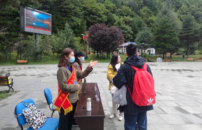 五是用心當好景區“防疫員”。面對“旅游接待要順暢,疫情防控不能松”的雙重考驗,景區工作人員就地變身“防疫員”在做好防疫宣傳的同時,進一步強化疫情防控動態巡查,及時發現勸誡和制止不配合體溫檢測、隨意摘除口罩、隨地吐痰、聚集扎推游覽等不配合疫情防控要求和不文明旅游行為,確保“十·一”黃金周和冰川彩林黃金季期間的疫情防控工作萬無一失。