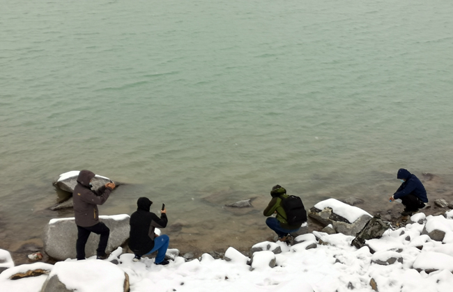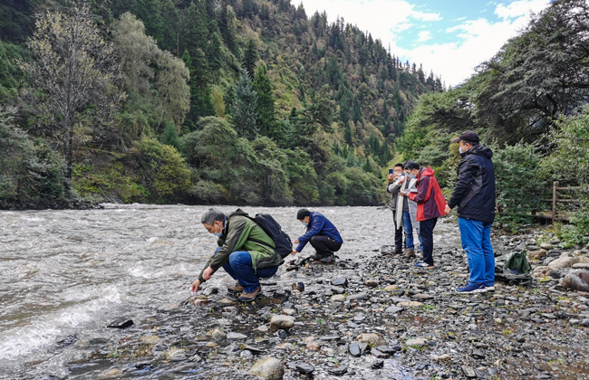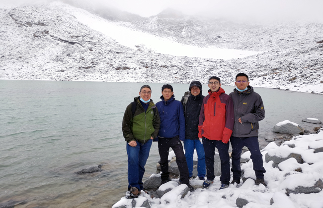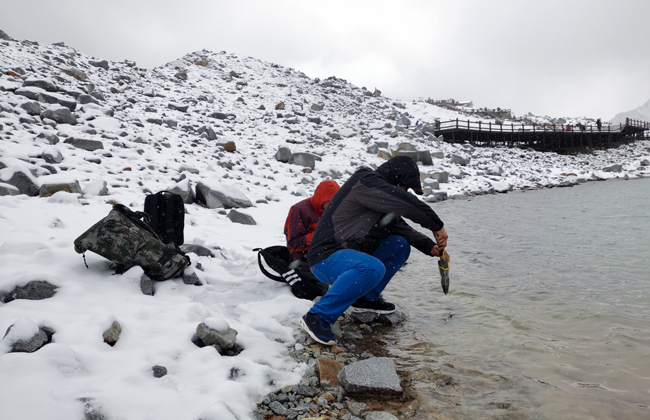 團隊專家一行首先詳細了解了達古冰川景區(qū)近年來科研工作開展情況以及科研基礎(chǔ)設(shè)施建設(shè)情況,并就雙方目前合作領(lǐng)域進行了探討。隨后,專家們查看了不同海拔的自動氣象站,并對達古冰川的快速退縮進行了考察,采集了河流和湖泊水體、沉積物、新降雪等樣品。同時對達古冰川周邊的生態(tài)環(huán)境、地貌、水文等進行了考察。