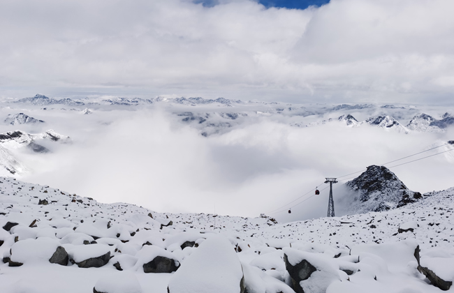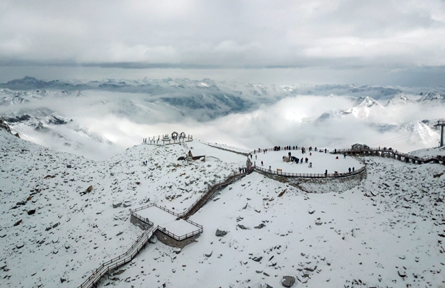 最近幾天,達古冰川接連下雪,漫天大雪讓景區變身冰雪奇緣世界,4860之巔被籠罩上一層雪紗,溫柔清麗、圣潔純粹,云海飄渺朦朧,是心中那個白雪童話仙境沒錯了。