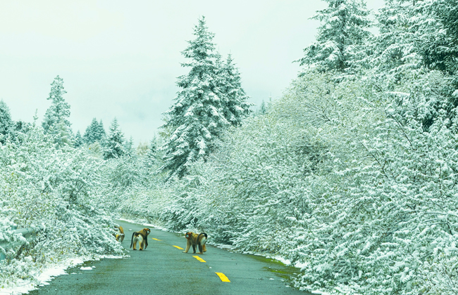 達古冰川景色有多美?有多熱鬧?這么說吧,連國家一級保護動物金絲猴都前來圍觀湊熱鬧了,川金絲猴是典型的森林樹棲動物,常年棲息于海拔1500-3300米的森林中。金燦燦的毛甚是好看可愛,可謂是人見人愛,達古冰川藏酋猴更是一些活潑乖巧惹人愛的小家伙,他們經常成群結隊在景區跟游客們玩耍親密互動,不怕人的特點也讓游客們感覺很是親切喜歡。