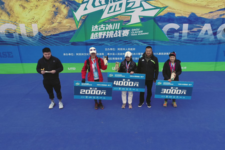 當日下午17時,此次越野挑戰賽的頒獎儀式在下午5:00在達古冰川游人廣場舉行。在里程最長,最考驗體力的38km競技組中,三知布選手以3小時27分58秒的優異成績獲得了男子組的第一名,唐紅梅以5小時32分18秒贏得女子組的第一名。
