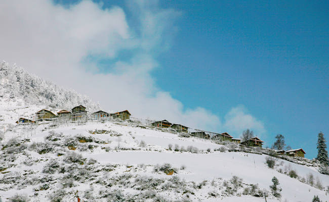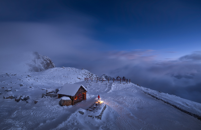 白天的絕美雪景看得直讓人驚嘆,晚上在新晉的小木屋欣賞璀璨星空,雪山云海,星空銀河,仿佛住在一個童話里的精靈小屋,白天黑夜的美達古都能承包!