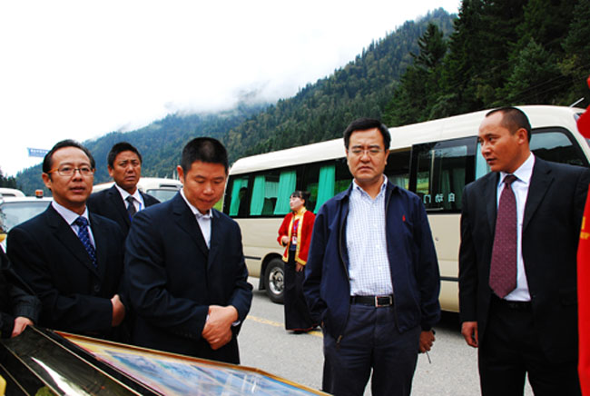 ? ? ? ? 8月29日,省交通運輸廳副廳長馮文生一行在阿壩州州委常委、副州長朱傳生、州政府副州長楊長清等相關領導陪同下,深入達古冰山景區檢查指導工作。馮廳長一行對景區三十余公里的公路進行了細致檢查,并認真聽取了達古冰山管理局和黑水縣人民政府相關領導對景區所處交通地理位置及景區公路養護方面的匯報。