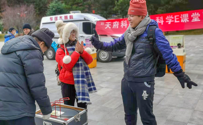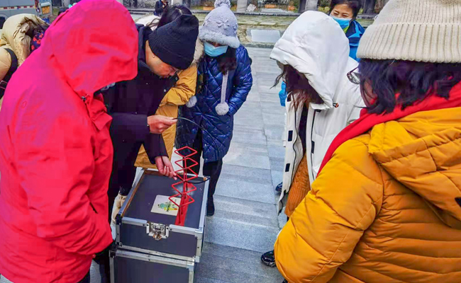 一是在景區游人中心廣場開展“天府科技云—科學E課堂”主題科普活動。以“科普大篷車”為載體,以科普展品、科普資料、科普展覽等形式,向廣大游客科普涉及聲、光、力、電、磁等多學科的科學小知識。活動極富科學性、知識性、趣味性,現場吸引了眾多游客前來體驗,游客們通過在科普人員的指導下,親手操作,學習科學知識,感受科學奧秘。營造了“學科學、用科學、愛科學”的良好氛圍。