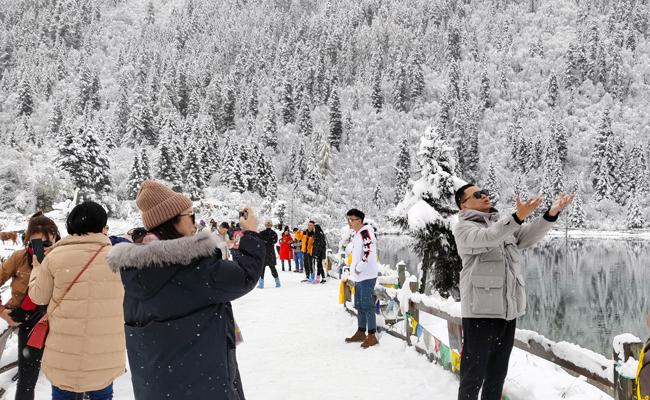 一是致力于景區差異化,精心打造冰雪旅游產品。開展“靚裝”活動,增設“觀景木屋”,修建“遠古記憶”文化墻,對咖啡廳、鳥巢、達古湖、羅畢圣湖等網紅打卡點進行升級改造。立足資源優勢,針對景區有長達10個月的冰雪旅游期,打造了一批具有特色亮點的網紅打卡景觀。在達古湖、情人灘打造冰雪旅游體驗區,打造湖上滑冰及冰湖雪人打卡點等。先后推出了“自然絢色、用影像記錄自然色彩”攝影大賽等系列活動,努力將景區打造成為年輕人賞雪、玩雪、吻雪、打卡雪的首選旅游區。