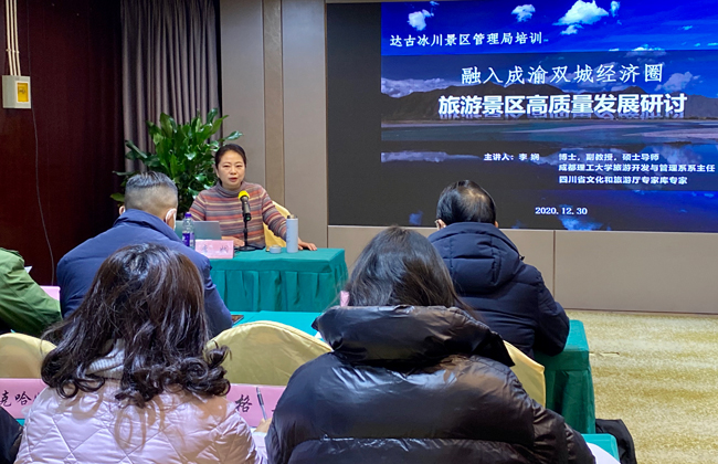 為深入學(xué)習(xí)領(lǐng)會(huì)習(xí)近平總書記關(guān)于推進(jìn)成渝地區(qū)旅游經(jīng)濟(jì)圈建設(shè)的重要講話精神,認(rèn)真貫徹省委十一屆七次全會(huì)要求,落實(shí)州委安排部署,主動(dòng)融入成渝旅游經(jīng)濟(jì)圈建設(shè),不斷拓展達(dá)古冰川景區(qū)生態(tài)旅游產(chǎn)業(yè)發(fā)展空間,加快建立與高質(zhì)量生態(tài)旅游發(fā)展相適應(yīng)的干部人才隊(duì)伍。近日,達(dá)古冰川管理局主動(dòng)對(duì)接重慶文旅企業(yè),在重慶市組織開展“成渝地區(qū)旅游經(jīng)濟(jì)圈建設(shè)”專題座談會(huì),重慶阿壩州商會(huì)、重慶澳華國際旅行社、重慶超越永遠(yuǎn)旅行社、重慶唐吉天域國際旅行社、重慶和美達(dá)國際旅行社、重慶恒通國際旅行社、重慶風(fēng)行在路上自駕、重慶品正自駕以及管理局領(lǐng)導(dǎo)班子成員、部分中層管理人員、職工代表共計(jì)40余人參加了座談會(huì)。