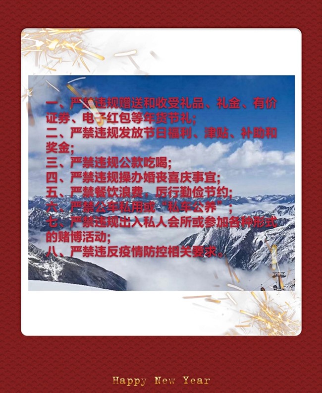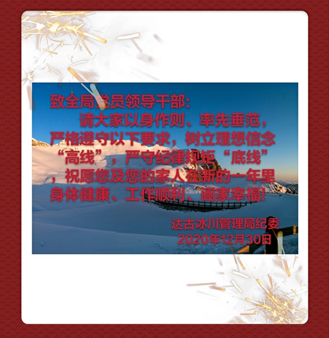 為持續(xù)深入落實中央八項規(guī)定精神,馳而不息糾正“四風”,營造元旦期間風清氣正的節(jié)日氛圍,達古冰川管理局紀委持續(xù)開展節(jié)前廉政提醒,著力推進廉政警示教育常態(tài)化、規(guī)范化和長效化。