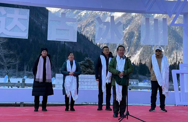 上午10點,達古冰川文定清局長對參加活動的到場人員表示了熱烈歡迎并致辭。文局長表示,在不平凡的2020年,達古冰川景區在面臨新冠疫情肆虐、國道347升級改造等不利因素的影響下,緊緊圍繞“凈土阿壩”這一主題品牌,立足達古冰川景區獨特優勢,深挖“詩無達古、四季精彩”景區內涵,全面落實景區恢復性措施,冰川品牌美譽度和市場影響力得到全面提升,實現快速發展的積極因素正在不斷聚集,游客接待、綜合收入均創歷史新高,實現了質的飛躍。站在新的發展起點,展望新的發展愿景,承載美好的冰川夢想,達古冰川“零度”音樂會暨新年祈福活動如期而至。