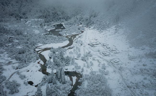 最近兩天達古冰川大雪紛飛,來自天國的雪花兒,飄飄悠悠,如斷線的珍珠般仙女散花,山上山下瞬間被披上一層雪紗,潔白的雪在樹枝上凝成一束束晶瑩剔透的霧凇,遠遠望去,山峰樹木,湖泊河流顯得更加靜謐圣潔,天地銀白一色,北國風光、千里冰封、萬里雪飄,置身其中,好像走進了一幅清新淡雅的水墨丹青畫,仿佛穿越到仙境之地,2021年以來,達古冰川瑞雪頻降,也祝愿新的一年順遂安好,如意吉祥。