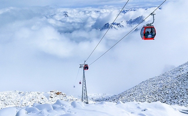 乘坐全球海拔最高的客運索道,一路向上而去,感覺冰川高山都近在咫尺,群山都在腳下,視野開闊,景色壯觀,讓人驚嘆。